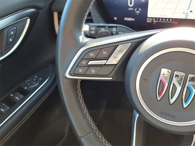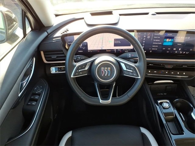 THE 2025 BUICK ENVISION SPORT TOURING AWD FEATURES PERFORATED LEATHER-APPOINTED SEATS, A POWER DRIVER SEAT WITH MEMORY SETTINGS, AND A LEATHER-WRAPPED FLAT-BOTTOM SPORT STEERING WHEEL. IT ALSO INCLUDES A BOSE 9-SPEAKER PREMIUM AUDIO SYSTEM, BUICK QUIETTUNING WITH ACTIVE NOISE CANCELLATION, AND A 30 ULTRA-WIDE DISPLAY WITH GOOGLE BUILT-IN, WIRELESS APPLE CARPLAY, AND ANDROID AUTO. EXTERIOR UPGRADES INCLUDE 20 CARBON FLASH ALUMINUM WHEELS, ENHANCED LED HEADLAMPS, AND ADAPTIVE CRUISE CONTROL WITH HD SURROUND VISION FOR ADDED SAFETY.