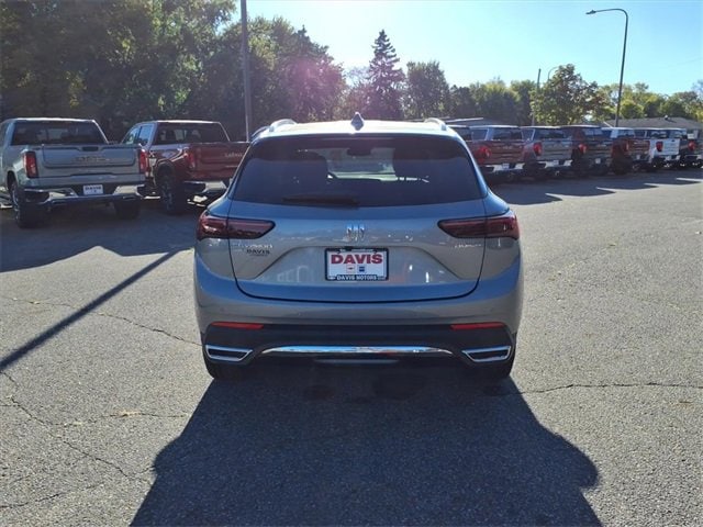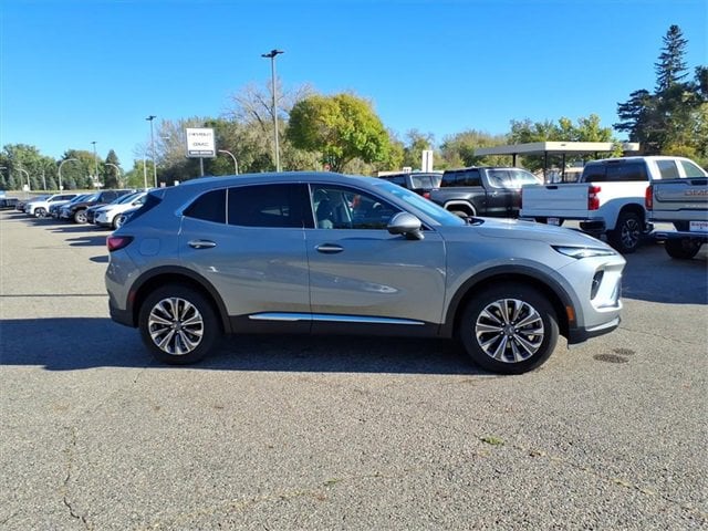 THE 2025 BUICK ENVISION PREFERRED AWD OFFERS A LUXURIOUS CABIN WITH AN 8-WAY POWER DRIVER SEAT, MEMORY SETTINGS, BOSE 9-SPEAKER AUDIO, AND A 30 ULTRA-WIDE DISPLAY WITH GOOGLE BUILT-IN, WIRELESS APPLE CARPLAY, AND ANDROID AUTO. DRIVER CONVENIENCE FEATURES INCLUDE REMOTE START, WIRELESS CHARGING, ADAPTIVE CRUISE CONTROL, AND A HEAD-UP DISPLAY. FINISHED IN MOONSTONE GRAY METALLIC, IT RIDES ON 18 ALUMINUM WHEELS AND INCLUDES ADVANCED SAFETY TECHNOLOGIES LIKE REAR CROSS TRAFFIC BRAKING, REVERSE AUTOMATIC BRAKING, AND HD SURROUND VISION.