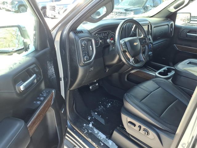 THIS HIGH COUNTRY IS LOADED WITH PREMIUM INTERIOR FEATURES INCLUDING HEATED AND VENTILATED LEATHER FRONT BUCKET SEATS, HEATED REAR SEATS, A HEATED LEATHER-WRAPPED STEERING WHEEL WITH AUDIO CONTROLS, DUAL-ZONE CLIMATE CONTROL, DRIVER SEAT AND MIRROR MEMORY, WIRELESS CHARGING, BOSE PREMIUM AUDIO, AND CHEVROLET INFOTAINMENT 3 PREMIUM WITH NAVIGATION, WIRELESS APPLE CARPLAY, AND ANDROID AUTO. SEATING INCLUDES A SPACIOUS CREW CAB LAYOUT WITH FRONT POWER BUCKET SEATS AND A REAR 60/40 FOLDING BENCH SEAT WITH INTEGRATED STORAGE FOR BOTH PASSENGER COMFORT AND CARGO FLEXIBILITY. FINISHED IN SATIN STEEL METALLIC WITH A JET BLACK INTERIOR, THIS SILVERADO ALSO FEATURES 22 POLISHED ALUMINUM WHEELS, CHROME ASSIST STEPS, LED LIGHTING, A POWER UP/DOWN TAILGATE, SPRAY-ON BEDLINER, AND DUAL EXHAUST WITH POLISHED TIPS.