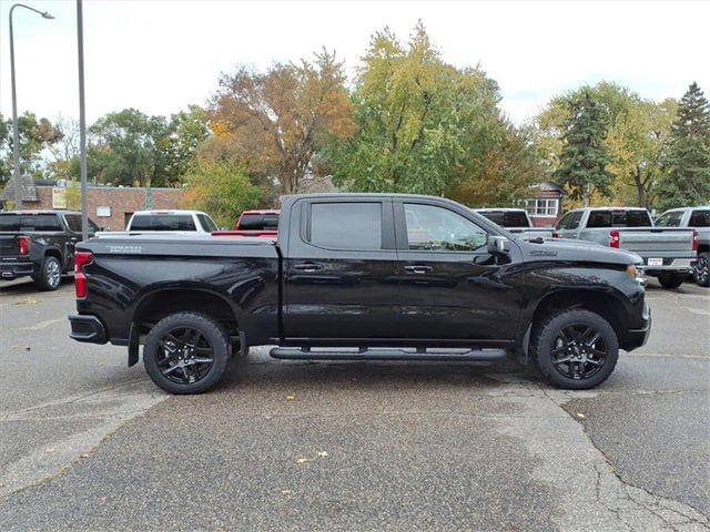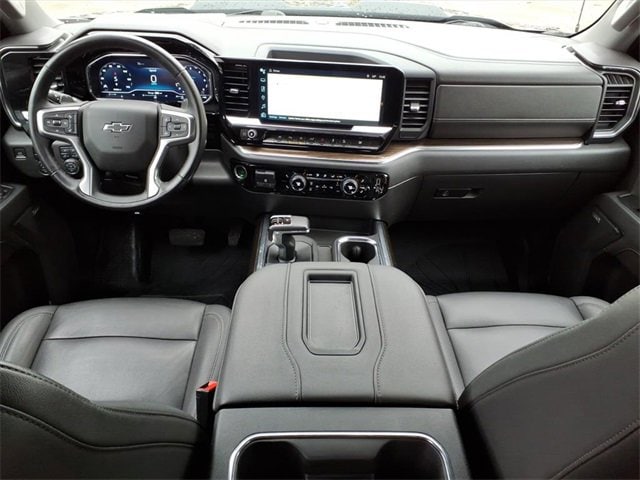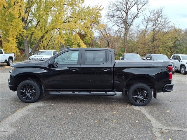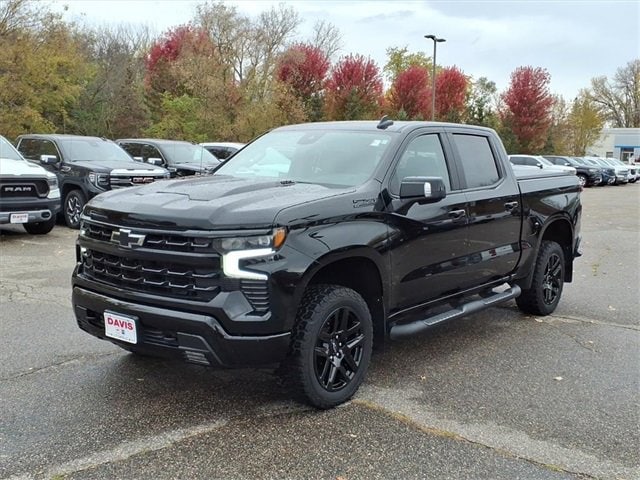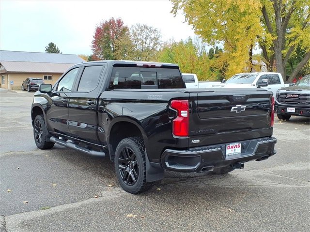 2022 CHEVROLET SILVERADO LT TRAIL BOSS CREW CAB 4X4 IN BLACK WITH A JET BLACK INTERIOR. POWERED BY THE 6.2L ECOTEC3 V8 ENGINE AND 10-SPEED AUTOMATIC TRANSMISSION, THIS TRUCK FEATURES THE Z71 OFF-ROAD PACKAGE WITH A FACTORY 2-INCH LIFT, SKID PLATES, HILL DESCENT CONTROL, AND TRAILERING PACKAGE. INTERIOR AMENITIES INCLUDE LEATHER SEATING, HEATED FRONT SEATS (REQUIRES RETROFIT), HEATED LEATHER-WRAPPED STEERING WHEEL, DUAL-ZONE CLIMATE CONTROL, AND THE BOSE PREMIUM SOUND SYSTEM. EQUIPPED WITH THE LT TRAIL BOSS PREMIUM PACKAGE FEATURING HD SURROUND VISION, TRAILER BRAKE CONTROLLER, ADAPTIVE CRUISE CONTROL, REAR CAMERA MIRROR, AND UNIVERSAL HOME REMOTE. EXTERIOR HIGHLIGHTS INCLUDE 20 HIGH-GLOSS BLACK ALUMINUM WHEELS, MULTIFLEX TAILGATE, SPRAY-ON BEDLINER, PERIMETER LIGHTING, AND BLACK MIDNIGHT EDITION TRIM.