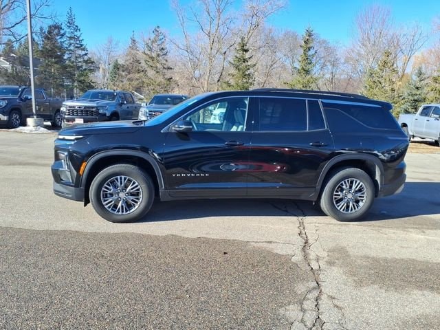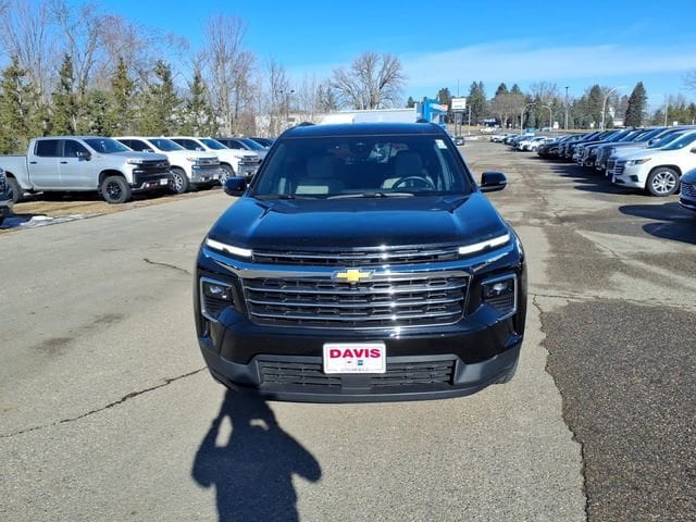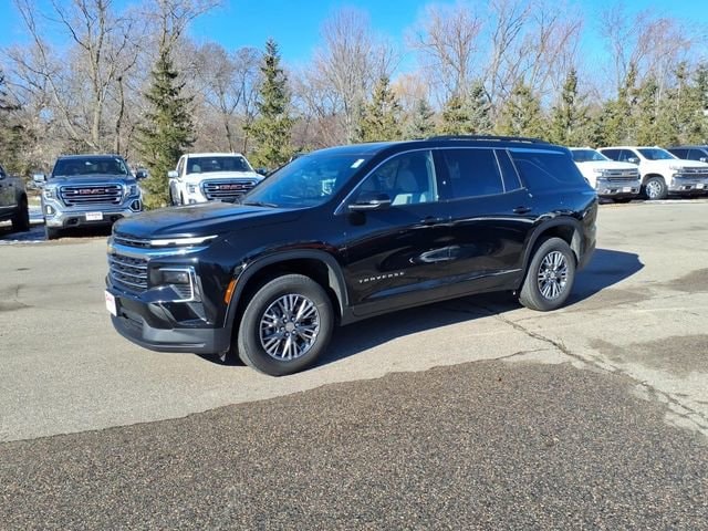 THE 2025 CHEVROLET TRAVERSE LT AWD COMES WITH HEATED FRONT SEATS, A HEATED STEERING WHEEL, TRI-ZONE AUTOMATIC CLIMATE CONTROL, AND WIRELESS PHONE CHARGING, ALONG WITH REMOTE VEHICLE START AND A 17.7 DIAGONAL LCD DISPLAY FOR ENTERTAINMENT AND CONNECTIVITY. IT FEATURES 7-PASSENGER SEATING WITH AN 8-WAY POWER DRIVER SEAT AND 4-WAY MANUAL FRONT PASSENGER SEAT, PROVIDING COMFORT FOR THE WHOLE FAMILY. THE EXTERIOR INCLUDES MOSAIC BLACK METALLIC PAINT, BLACK ROOF RAILS, AND 18 GRAZEN METALLIC MACHINED-FACE ALUMINUM WHEELS, COMPLEMENTED BY ADVANCED SAFETY SYSTEMS LIKE ADAPTIVE CRUISE CONTROL, LANE KEEP ASSIST, AND REAR CROSS TRAFFIC BRAKING.