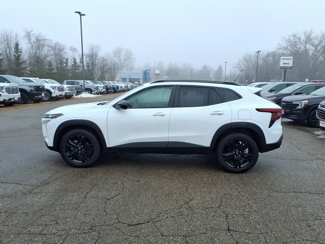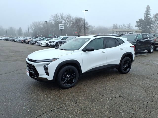 THE 2025 Chevrolet TRAX ACTIV FEATURES HEATED FRONT SEATS, A HEATED STEERING WHEEL, 8-WAY POWER DRIVER SEAT WITH LUMBAR SUPPORT, REMOTE START, KEYLESS OPEN & START, AND AN 11 TOUCHSCREEN WITH WIRELESS APPLE CARPLAY AND ANDROID AUTO. SAFETY IS A PRIORITY WITH CHEVY SAFETY ASSIST, ADAPTIVE CRUISE CONTROL, REAR CROSS TRAFFIC ALERT, LANE CHANGE ALERT WITH SIDE BLIND ZONE ALERT, AND HD REAR VISION CAMERA. FINISHED IN SUMMIT WHITE WITH JET BLACK/ARTEMIS EVOTEX SEATING AND 18 GLOSS BLACK ALUMINUM WHEELS, THIS TURBOCHARGED SUV DELIVERS MODERN STYLE AND EVERYDAY PRACTICALITY.