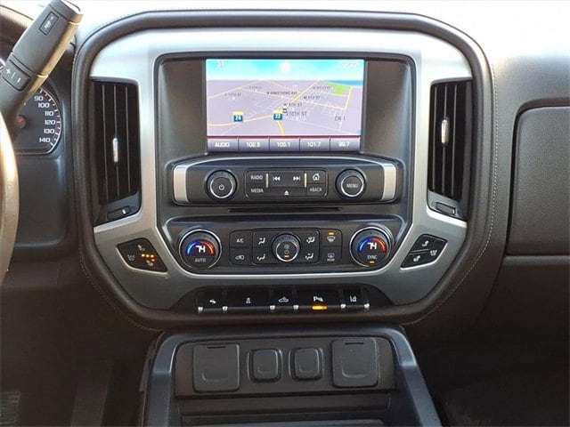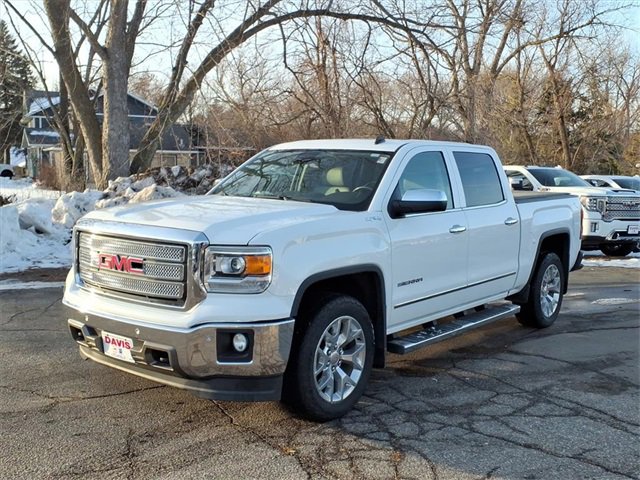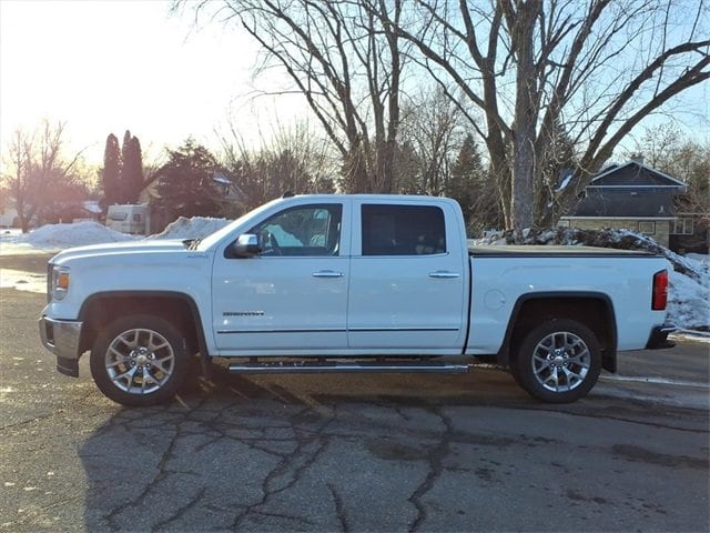 THE 2014 GMC SIERRA SLT OFFERS PERFORATED LEATHER-APPOINTED SEATS, HEATED AND COOLED FRONT SEATS, HEATED LEATHER-WRAPPED STEERING WHEEL, DUAL-ZONE AUTOMATIC CLIMATE CONTROL, AND 8 COLOR DRIVER INFORMATION CENTER FOR COMFORT AND CONVENIENCE. EXTERIOR FEATURES INCLUDE CHROME FRONT AND REAR BUMPERS, CHROME GRILLE, CORNERSTEP REAR BUMPER, 20 CHROME ALUMINUM WHEELS, LED CARGO BOX LIGHTING, AND EZ-LIFT TAILGATE FOR FUNCTIONALITY AND STYLE. POWERING THIS TRUCK IS A 6.2L ECOTEC3 V8 ENGINE WITH 6-SPEED AUTOMATIC TRANSMISSION, HEAVY-DUTY LOCKING REAR DIFFERENTIAL, MAX TRAILERING PACKAGE, STABILITRAK, AND 4X4 DRIVE TRAIN FOR STRONG PERFORMANCE AND TRAILERING CAPABILITY.