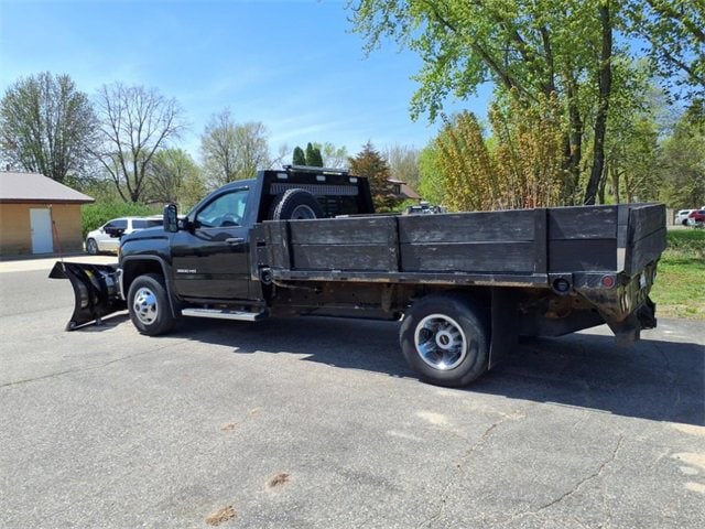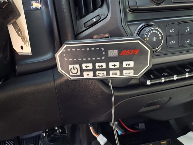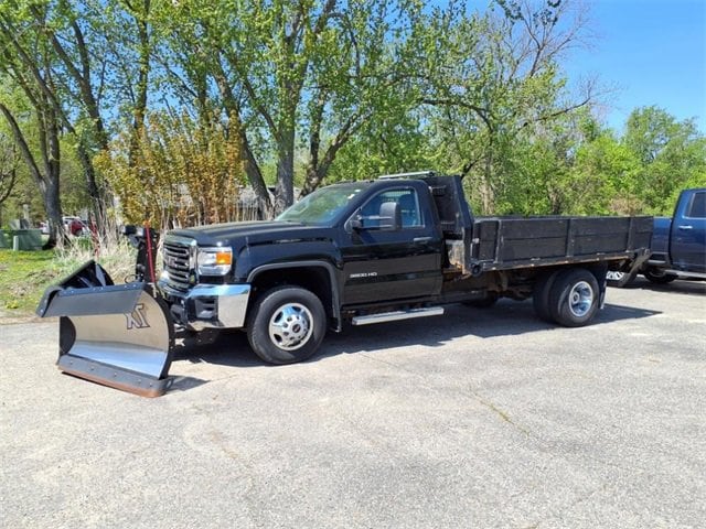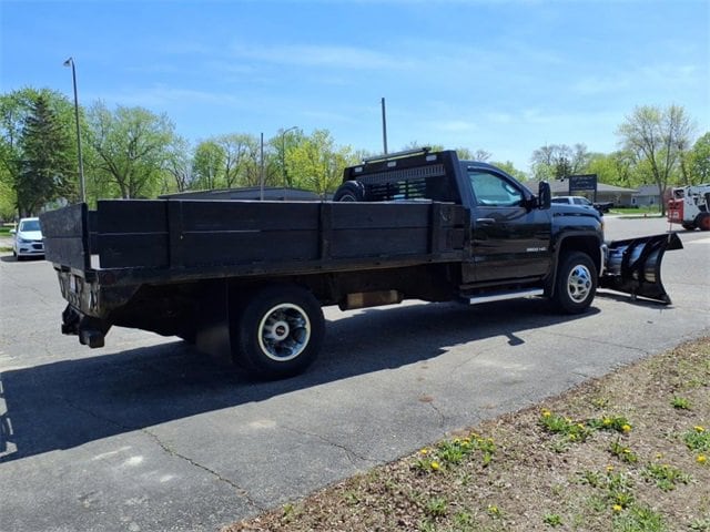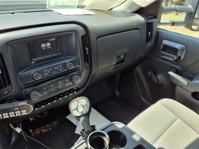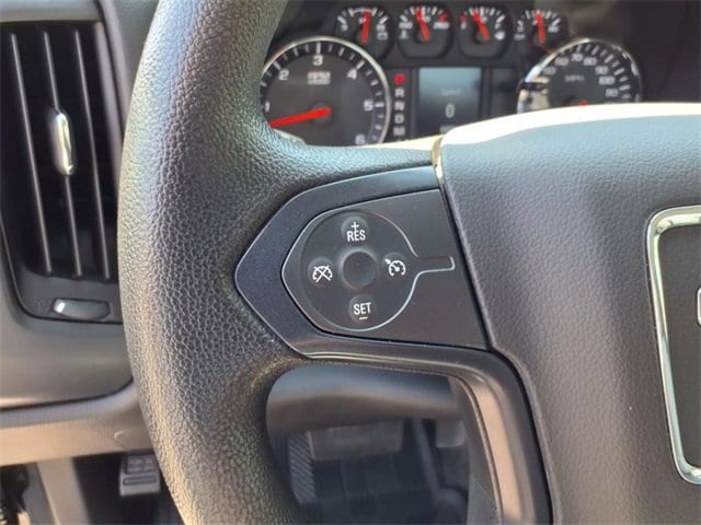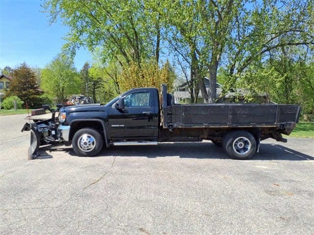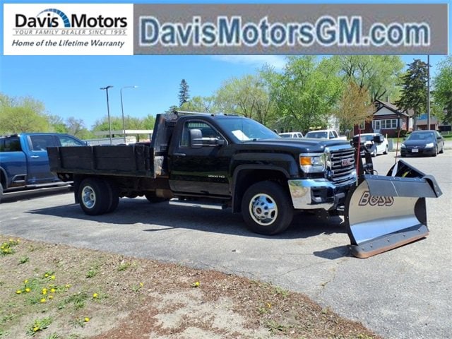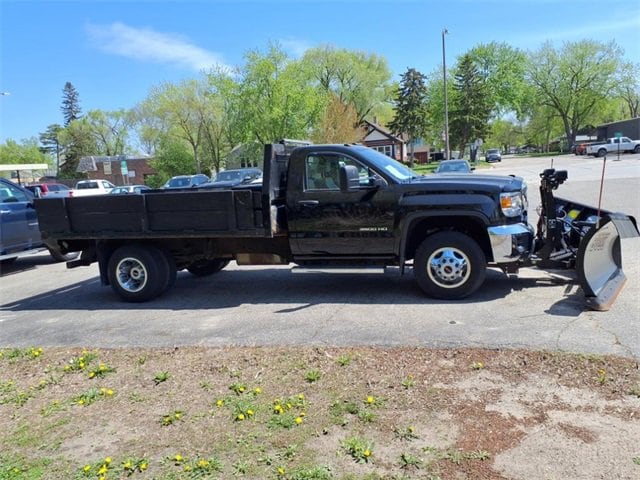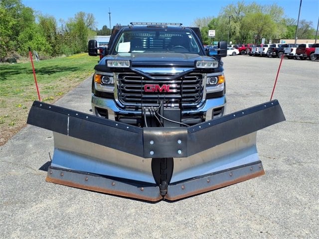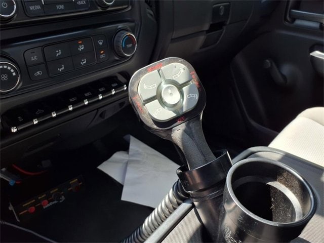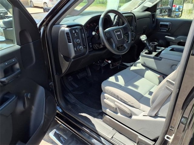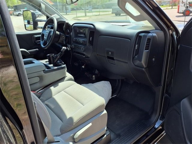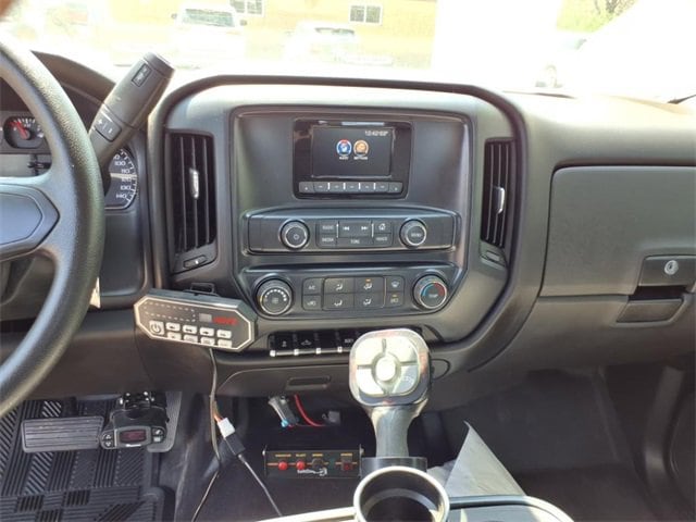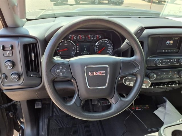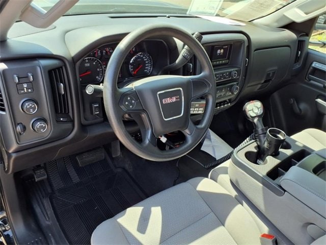 THIS SIERRA REGULAR CAB FEATURES A JET BLACK/DARK ASH INTERIOR WITH A 3-PASSENGER FRONT 40/20/40 SPLIT BENCH SEAT, AIR CONDITIONING, A RUBBERIZED-VINYL FLOOR COVERING, A 4.2 COLOR DISPLAY AUDIO SYSTEM, AND CRUISE CONTROL MOUNTED TO A TILT-ADJUSTABLE STEERING WHEEL. UPGRADED EQUIPMENT INCLUDES AN INTEGRATED TRAILER BRAKE CONTROLLER, 4 UPFITTER SWITCHES, ELECTRONIC SHIFT TRANSFER CASE, SNOW PLOW PREP PACKAGE, UNDERBODY SHIELD, AND 220-AMP ALTERNATOR FOR HEAVY-DUTY JOBS. FINISHED IN ONYX BLACK, THE EXTERIOR OFFERS A CHROME GRILLE SURROUND, 17 PAINTED STEEL WHEELS, BLACK CAMPER-STYLE MIRRORS, CARGO LAMPS, AND SMOKED AMBER ROOF MARKER LIGHTS FOR A RUGGED, READY-FOR-WORK APPEARANCE.