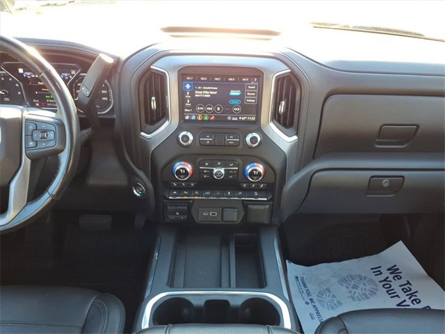 This truck has a 10 speed transmission that you can barely feel it shift. Traded in an F150 and test drove a similar equipped Ram. Although the Ram was nice, the styling of the GMC won me over, along with the tailgate! It also pulls my boat way better than the Ford, just smoother all around. The cabin is very quiet and the gas mileage is much better than V8 Ford. The cabin is super quiet and the ride is awesome. Love the adaptive cruise control too. The technology is fine and the screen is plenty big. Remember, you are driving this truck, not going to thr drive in! Most importantly, the controls are simple to use and Bose stereo sounds great! Oh, and I got it cheaper than the similar Ram too!
