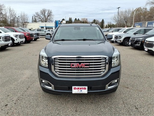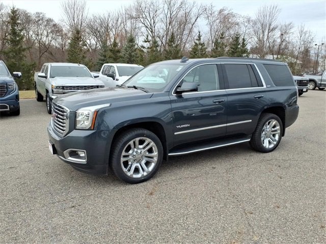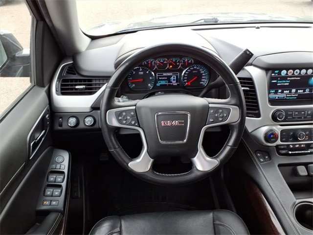 THE 2020 GMC YUKON SLT 4WD FEATURES A LUXURIOUS JET BLACK LEATHER INTERIOR WITH HEATED AND VENTILATED FRONT SEATS, HEATED SECOND-ROW SEATS, POWER-FOLDING THIRD ROW, AND A HEATED STEERING WHEEL FOR COMFORT IN ANY CLIMATE. PREMIUM OPTIONS INCLUDE THE OPEN ROAD PACKAGE WITH A POWER SUNROOF, REAR SEAT ENTERTAINMENT SYSTEM, NAVIGATION, AND A BOSE PREMIUM AUDIO SYSTEM FOR A REFINED TRAVEL EXPERIENCE. EXTERIOR UPGRADES FROM THE SLT PREMIUM EDITION ADD 22-INCH CHROME WHEELS, A CHROME GRILLE, POLISHED EXHAUST TIP, AND DARK SKY METALLIC PAINT, WHILE THE MAX TRAILERING PACKAGE AND ADAPTIVE CRUISE CONTROL PROVIDE ADDED CAPABILITY AND SAFETY.