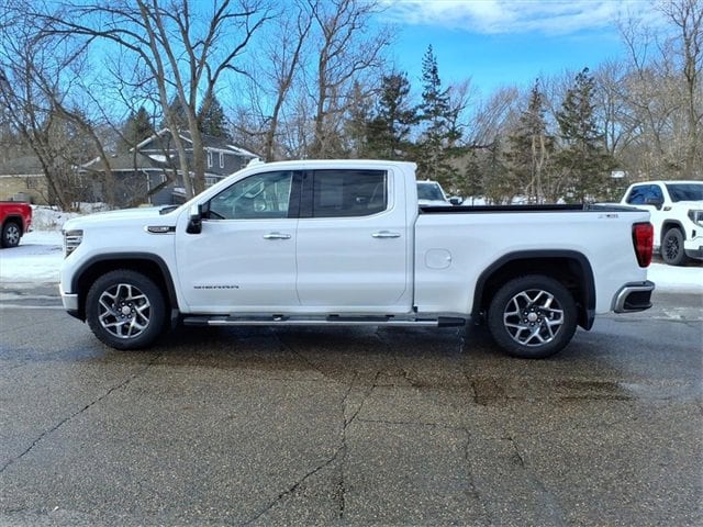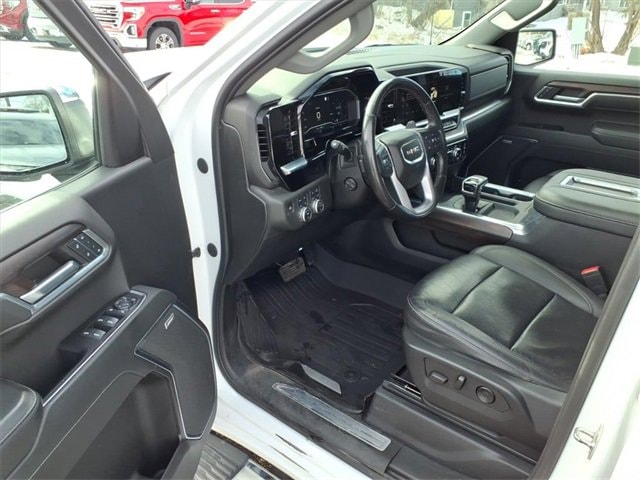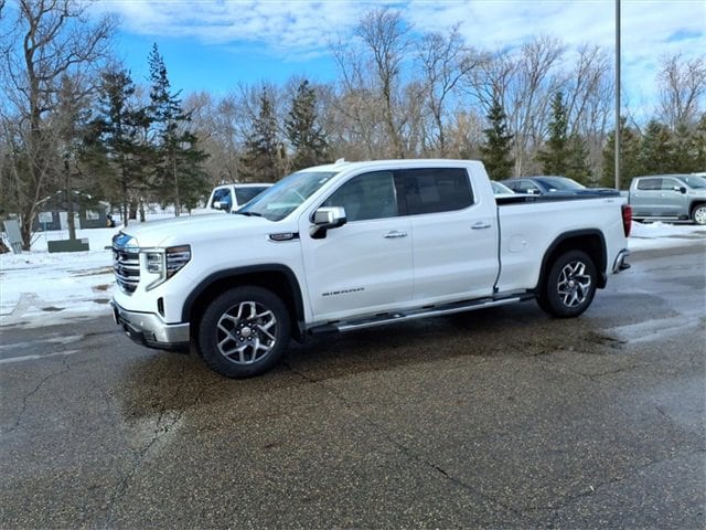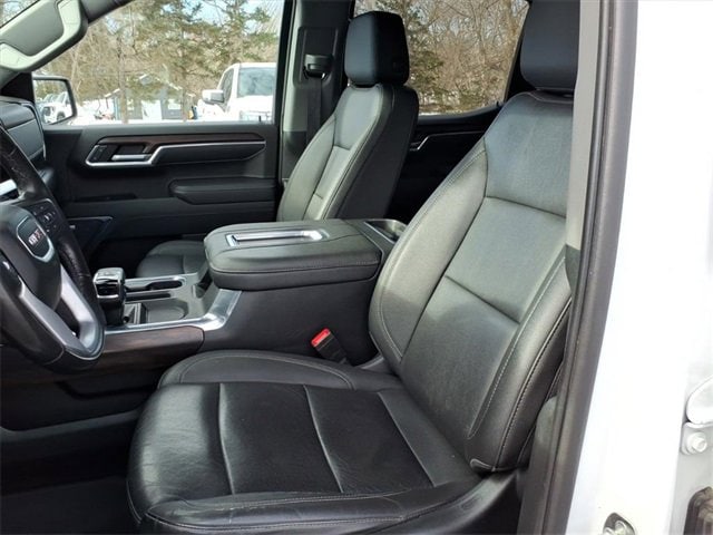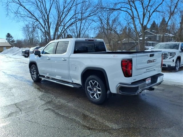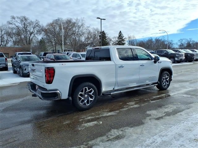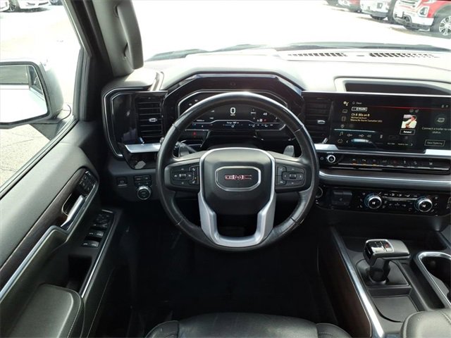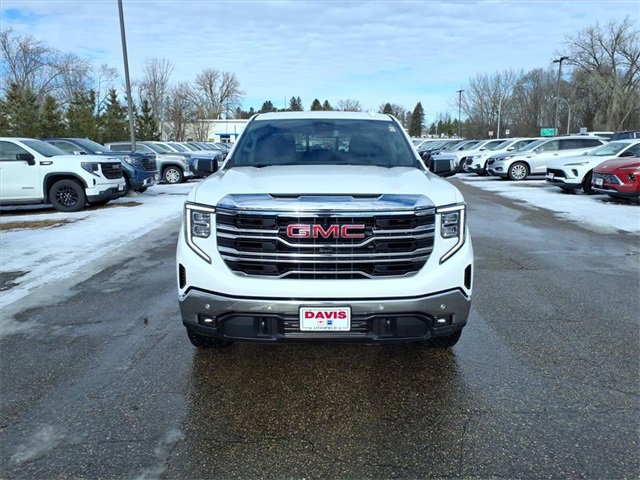 THIS SLT FEATURES A COMFORT-FOCUSED INTERIOR WITH HEATED FRONT SEATS, A HEATED LEATHER-WRAPPED STEERING WHEEL, DUAL-ZONE CLIMATE CONTROL, DRIVER SEAT AND MIRROR MEMORY, WIRELESS CHARGING, BOSE PREMIUM AUDIO, AND A LARGE 13.4 TOUCHSCREEN WITH WIRELESS APPLE CARPLAY AND ANDROID AUTO. SEATING INCLUDES A CREW CAB LAYOUT WITH FRONT BUCKET SEATS, A CENTER CONSOLE, AND A REAR 60/40 FOLDING BENCH SEAT WITH INTEGRATED STORAGE FOR PASSENGER COMFORT AND PRACTICALITY. FINISHED IN SUMMIT WHITE WITH A JET BLACK INTERIOR, THIS SIERRA ALSO OFFERS A MULTIPRO TAILGATE, CHROME ASSIST STEPS, LED EXTERIOR LIGHTING, 20 POLISHED ALUMINUM WHEELS, AND THE X31 OFF-ROAD PACKAGE FOR ADDED CAPABILITY.