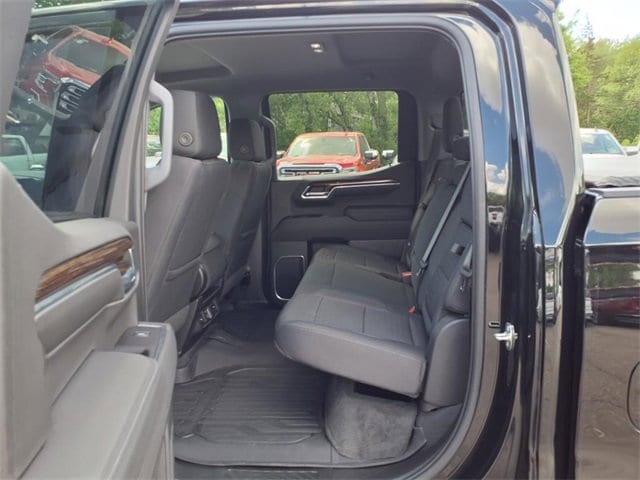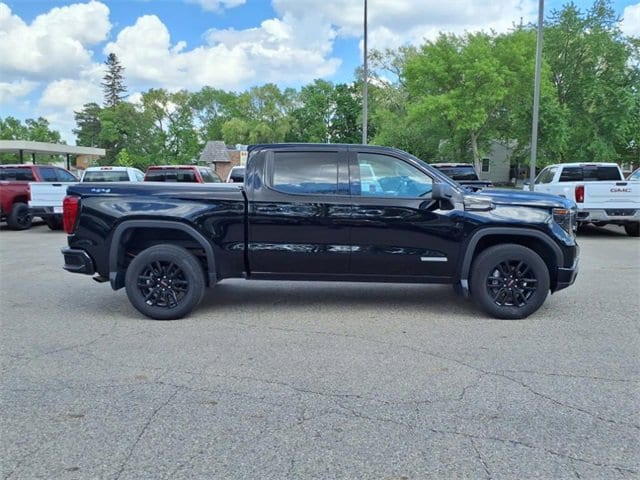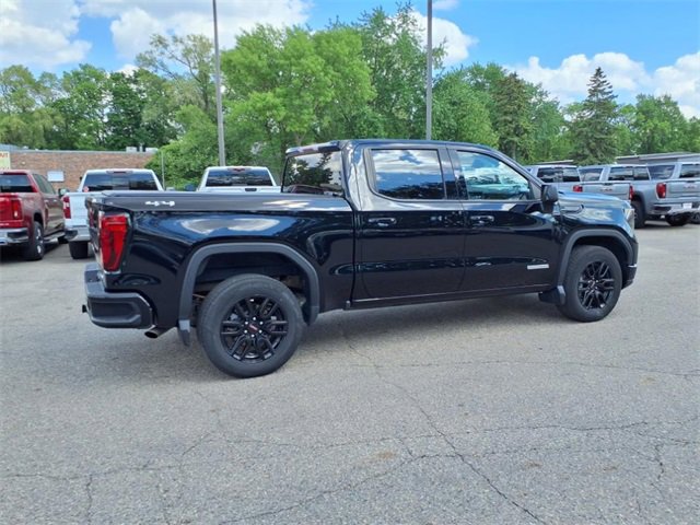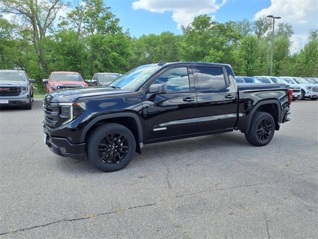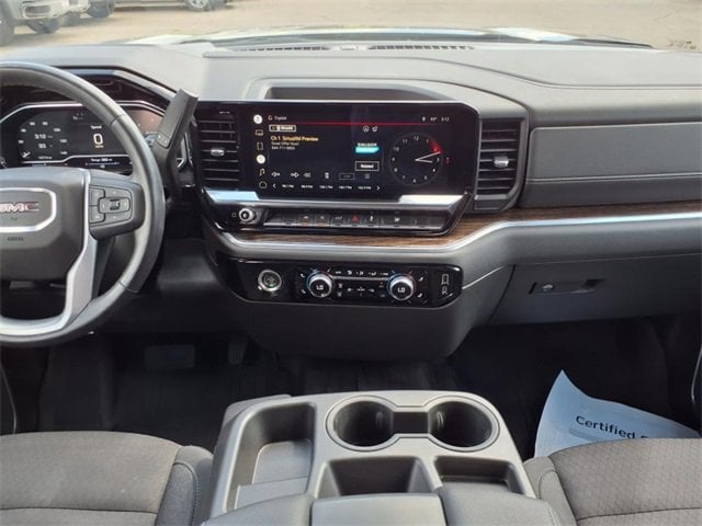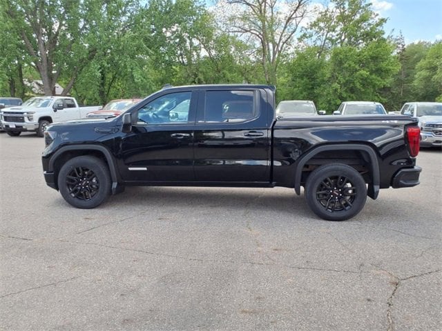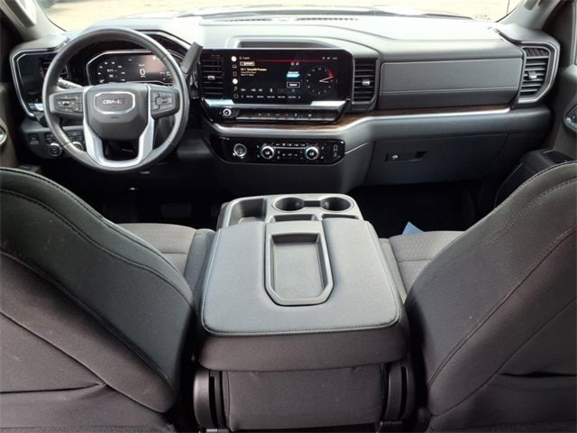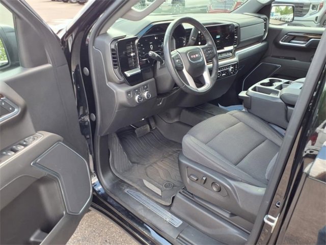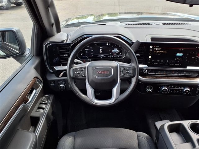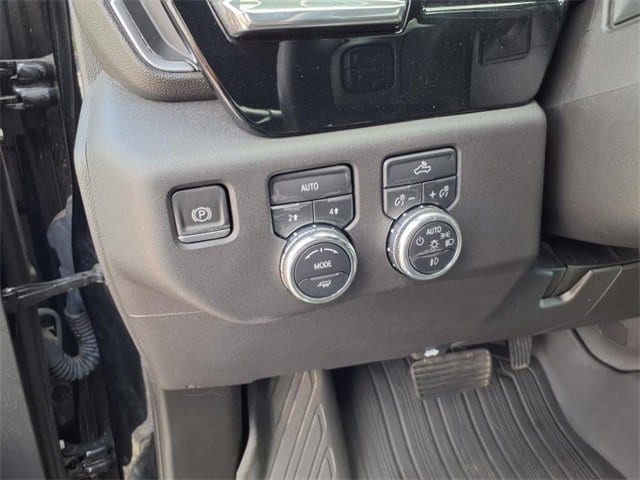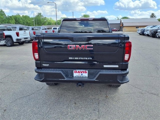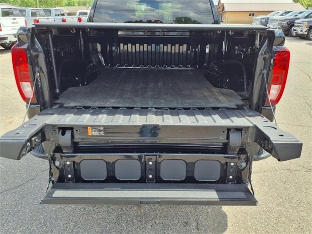 THE 2022 GMC SIERRA 1500 ELEVATION FEATURES A JET BLACK INTERIOR WITH HEATED FRONT BENCH SEATS, A 10-WAY POWER DRIVER SEAT, DUAL-ZONE CLIMATE CONTROL, A HEATED LEATHER-WRAPPED STEERING WHEEL, AND A MASSIVE 13.4 TOUCHSCREEN WITH GOOGLE BUILT-IN, WIRELESS APPLE CARPLAY, AND ANDROID AUTO. ITS 2.7L TURBO HIGH-OUTPUT ENGINE IS PAIRED TO AN 8-SPEED AUTOMATIC TRANSMISSION AND BACKED BY A 3.42 REAR AXLE, AUTO-LOCKING REAR DIFFERENTIAL, TERRAIN MODE, TRAILERING PACKAGE, AND 220-AMP ALTERNATOR FOR SERIOUS CAPABILITY. THE ONYX BLACK EXTERIOR INCLUDES 20 HIGH-GLOSS BLACK WHEELS, MULTIPRO TAILGATE, LED HEADLAMPS, FOG LAMPS, TAILLAMPS, AND CARGO LIGHTING, PLUS POWER-HEATED MIRRORS, FRONT RECOVERY HOOKS, AND AN EZ-LIFT POWER TAILGATE.