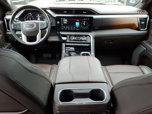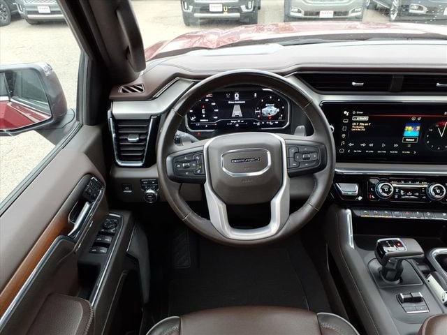 THE 2024 GMC SIERRA 1500 DENALI COMBINES LUXURY AND CAPABILITY WITH HEATED AND VENTILATED FRONT SEATS, HEATED REAR SEATS, PREMIUM FORGE PERFORATED LEATHER, AND A HEATED STEERING WHEEL FOR YEAR-ROUND COMFORT. ITS ADVANCED CABIN FEATURES A 13.4 TOUCHSCREEN WITH GOOGLE BUILT-IN, BOSE PREMIUM SOUND, ADAPTIVE CRUISE CONTROL, AND A HEAD-UP DISPLAY FOR A REFINED, CONNECTED DRIVE. EXTERIOR HIGHLIGHTS INCLUDE 22 ALUMINUM WHEELS, MULTIPRO POWER STEPS, A POWER SUNROOF, AND A SIGNATURE MULTIPRO TAILGATE THAT ENHANCES BOTH STYLE AND FUNCTIONALITY.