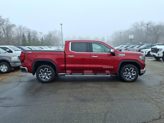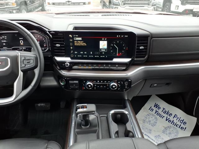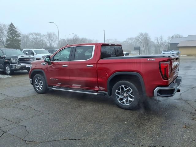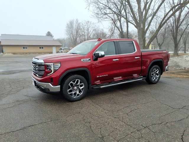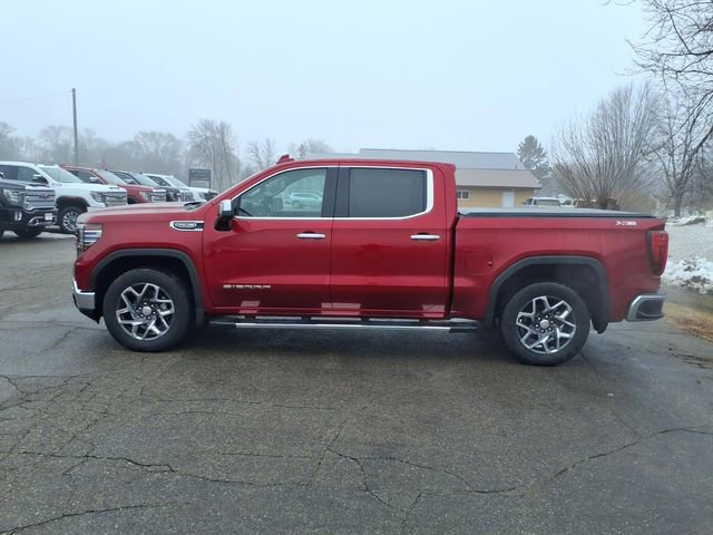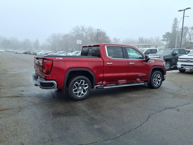 THE 2024 GMC SIERRA 1500 SLT CREW CAB 4WD IS LOADED WITH FRONT BUCKET SEATS, VENTILATED AND HEATED FRONT SEATS, A HEATED WRAPPED STEERING WHEEL, POWER RAKE AND TELESCOPING STEERING COLUMN, BOSE PREMIUM SOUND SYSTEM, WIRELESS CHARGING, ADAPTIVE CRUISE CONTROL, HD SURROUND VISION, AND A LARGE 13.4 TOUCHSCREEN WITH GOOGLE BUILT-IN, WIRELESS APPLE CARPLAY, AND WIRELESS ANDROID AUTO. THE SLT PREMIUM PLUS PACKAGE ADDS ADVANCED TRAILERING TECHNOLOGY INCLUDING TRAILER SIDE BLIND ZONE ALERT, HITCH GUIDANCE WITH HITCH VIEW, IN-VEHICLE TRAILERING APP, TRAILER BRAKE CONTROLLER, ALONG WITH CHROME ASSIST STEPS, SPRAY-ON BEDLINER, 20 POLISHED ALUMINUM WHEELS, AND THE X31 OFF-ROAD PACKAGE WITH SKID PLATES, OFF-ROAD SUSPENSION, HILL DESCENT CONTROL, 2-SPEED AUTOTRAC TRANSFER CASE, AND ALL-TERRAIN TIRES. FINISHED IN VOLCANIC RED TINTCOAT WITH A POWER SUNROOF, MULTIPRO TAILGATE, LED LIGHTING, POWER FOLDING HEATED MIRRORS, AND INTEGRATED DUAL EXHAUST, THIS SIERRA DELIVERS BOTH LUXURY AND CAPABILITY.