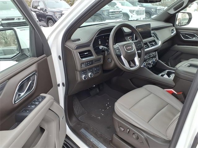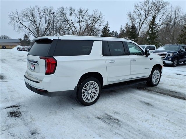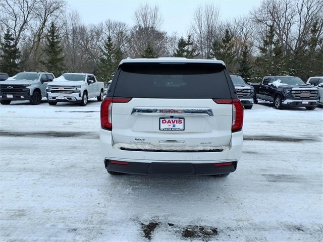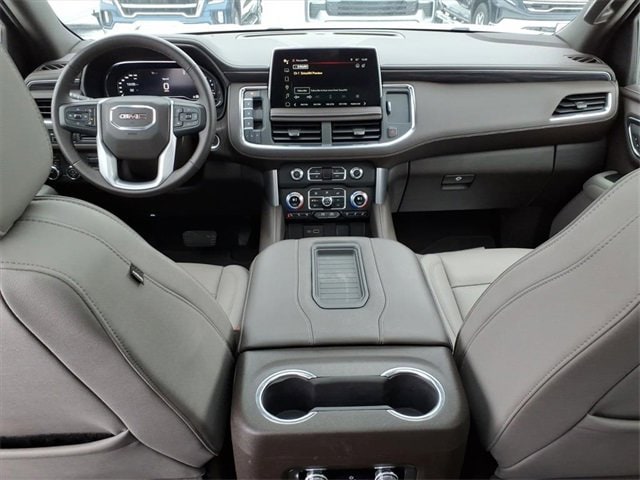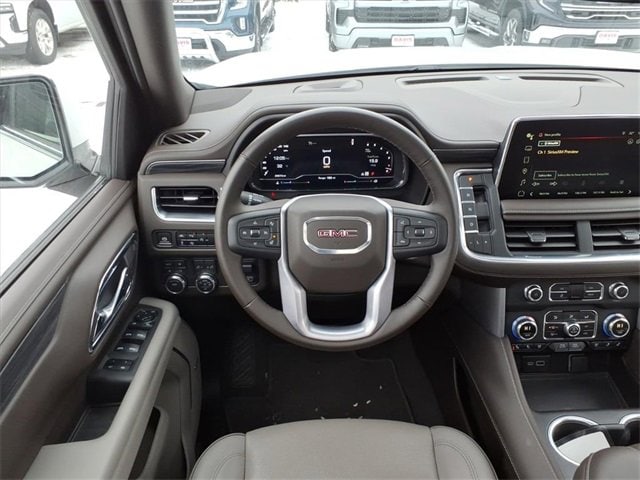 THE 2024 GMC YUKON XL SLT FEATURES A LUXURY-FOCUSED INTERIOR WITH HEATED AND VENTILATED FRONT LEATHER BUCKET SEATS, HEATED SECOND-ROW SEATS, A HEATED STEERING WHEEL, TRI-ZONE AUTOMATIC CLIMATE CONTROL, BOSE PREMIUM AUDIO, WIRELESS CHARGING, AND A PANORAMIC DUAL-PANE SUNROOF. IT IS POWERED BY A 5.3L ECOTEC3 V8 ENGINE PAIRED WITH A 10-SPEED AUTOMATIC TRANSMISSION AND 4WD, DELIVERING STRONG PERFORMANCE AND CONFIDENT ALL-SEASON CAPABILITY WITH THE MAX TRAILERING PACKAGE. EXTERIOR AND SAFETY HIGHLIGHTS INCLUDE 22 POLISHED ALUMINUM WHEELS, HANDS-FREE POWER LIFTGATE, ASSIST STEPS, HD SURROUND VISION, ADAPTIVE CRUISE CONTROL, GMC PRO SAFETY PLUS, AND ADVANCED TRAILERING TECHNOLOGY.