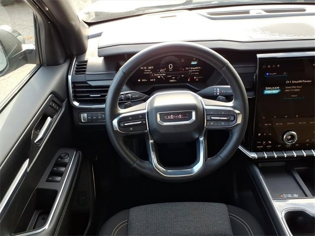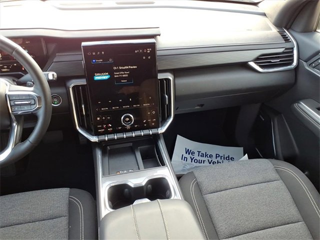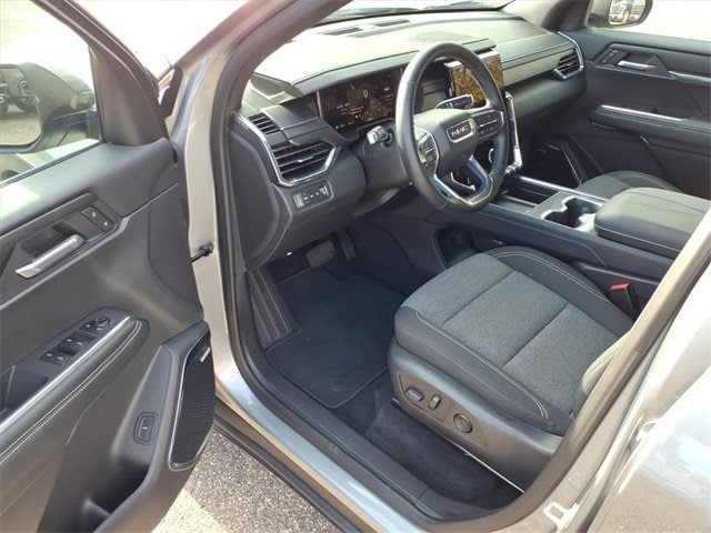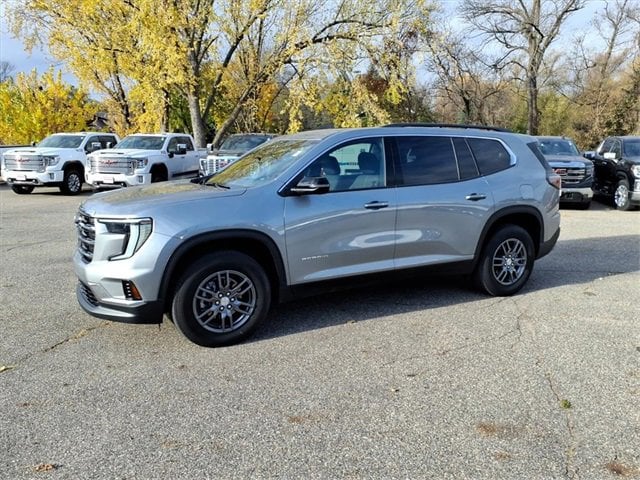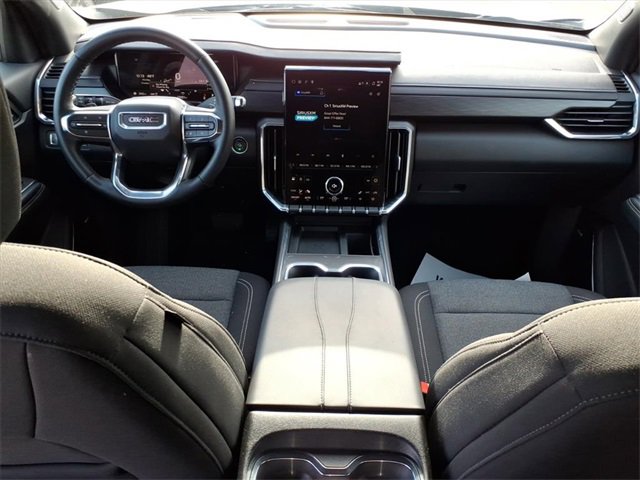 THE 2025 GMC ACADIA ELEVATION AWD FEATURES 2.5L TURBO DOHC SIDI ENGINE WITH 8-SPEED AUTOMATIC, AWD PERFORMANCE, AUTOSENSE POWER LIFTGATE, REMOTE VEHICLE START, AND WIRELESS CHARGING FOR CONVENIENCE AND MODERN CAPABILITY. INTERIOR COMFORT INCLUDES CLOTH AFTER DARK SEATING, HEATED DRIVER AND FRONT PASSENGER SEATS WITH 8-WAY POWER, HEATED STEERING WHEEL, TRI-ZONE AIR CONDITIONING, 8-PASSENGER CONFIGURATION WITH 2ND ROW SMART SLIDE, 2ND & 3RD ROW 60/40 SPLIT BENCH SEATS, AND 15 DIAGONAL PREMIUM INFOTAINMENT SYSTEM. EXTERIOR AND SAFETY FEATURES INCLUDE HEATED POWER ADJUSTABLE MIRRORS, BLACK ROOF RAILS, REAR PARK ASSIST, REVERSE AUTOMATIC BRAKING, ADAPTIVE CRUISE CONTROL, SAFETY ALERT SEAT, BUCKLE TO DRIVE, FORWARD COLLISION ALERT, REAR CROSS TRAFFIC BRAKING, BLIND ZONE STEERING ASSIST, AND FRONT PEDESTRIAN & BICYCLIST BRAKING.