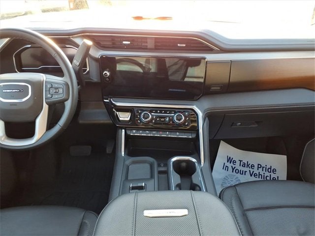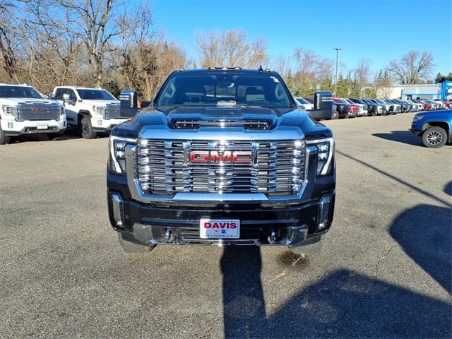 THE 2025 GMC SIERRA 3500 DENALI FEATURES A JET BLACK INTERIOR WITH 12-WAY POWER FRONT BUCKET SEATS, HEATED AND VENTILATED FRONT SEATS, HEATED REAR OUTER SEATS, DRIVER SEAT AND MIRROR MEMORY, WRAPPED HEATED STEERING WHEEL, DUAL-ZONE CLIMATE CONTROL, WIRELESS CHARGING, PREMIUM BOSE AUDIO, AND 13.4 GMC INFOTAINMENT WITH GOOGLE BUILT-IN AND NAVIGATION. POWER AND PERFORMANCE COME FROM A DURAMAX 6.6L TURBO-DIESEL PAIRED WITH ALLISON 10-SPEED AUTOMATIC, AUTO-LOCKING REAR DIFFERENTIAL, 2-SPEED AUTOTRAC TRANSFER CASE, ALL-TERRAIN TIRES, DIGITAL VARIABLE STEERING, AND FULL TRAILERING CAPABILITY INCLUDING GOOSENECK/5TH WHEEL PACKAGE. EXTERIOR HIGHLIGHTS INCLUDE ONYX BLACK PAINT, GMC MULTIPRO TAILGATE, POWER FOLDING/EXTENDING HEATED TRAILER MIRRORS, LED HEADLAMPS AND FOG LAMPS, POWER SUNROOF, SPRAY-ON BEDLINER, POWER REAR SLIDING WINDOW, CHROME RECOVERY HOOKS, ROOF MARKER LAMPS, AND POWER RETRACTABLE ASSIST STEPS WITH PERIMETER LIGHTING.