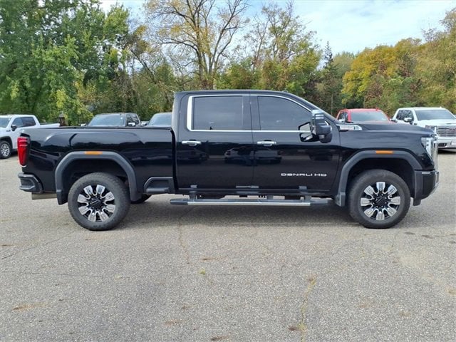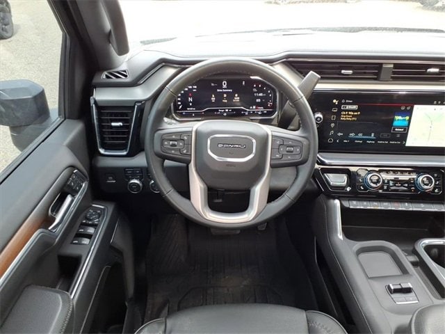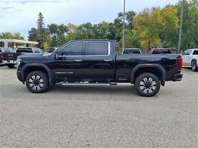 THE 2025 GMC SIERRA 3500 DENALI CREW CAB OFFERS LUXURY AND POWER WITH HEATED AND VENTILATED FRONT BUCKET SEATS, HEATED REAR SEATS, A HEATED STEERING WHEEL, AND DRIVER MEMORY SETTINGS. PREMIUM TECH INCLUDES A 13.4 TOUCHSCREEN WITH GOOGLE BUILT-IN, WIRELESS APPLE CARPLAY/ANDROID AUTO, BOSE AUDIO, BED VIEW CAMERA, AND A MULTI-COLOR HEAD-UP DISPLAY. EXTERIOR UPGRADES FEATURE A POWER SUNROOF, CHROME ASSIST STEPS, SPRAY-ON BEDLINER, MULTIPRO TAILGATE, ROOF MARKER LAMPS, AND THE DURAMAX 6.6L TURBO-DIESEL ENGINE PAIRED WITH AN ALLISON 10-SPEED AUTOMATIC.