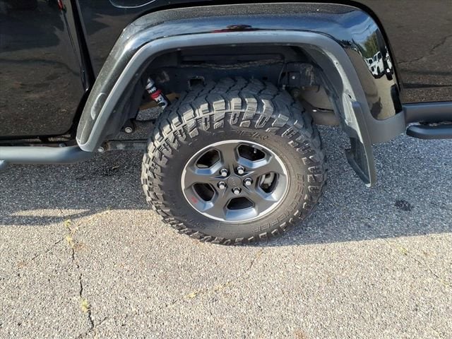 2020 JEEP GLADIATOR RUBICON 4X4 FEATURES LEATHER-TRIMMED BUCKET SEATS, HEATED FRONT SEATS, HEATED STEERING WHEEL, REMOTE START, UCONNECT 8.4-INCH NAVIGATION SYSTEM, ALPINE PREMIUM AUDIO, AND LOCKABLE REAR UNDERSEAT STORAGE. SAFETY TECHNOLOGY INCLUDES BLIND-SPOT DETECTION, CROSS-PATH DETECTION, ADAPTIVE CRUISE CONTROL, FORWARD COLLISION WARNING PLUS, PARKVIEW REAR CAMERA, AND ADVANCED BRAKE ASSIST. EXTERIOR UPGRADES INCLUDE PREMIUM LED LIGHTING, BODY-COLOR FENDER FLARES, SPRAY-IN BEDLINER, FREEDOM TOP 3-PIECE HARD TOP WITH SLIDING REAR WINDOW, ROLL-UP TONNEAU COVER, TRAILER-TOW PACKAGE, AND 33-INCH ALL-TERRAIN TIRES WITH FOX PERFORMANCE SHOCKS.